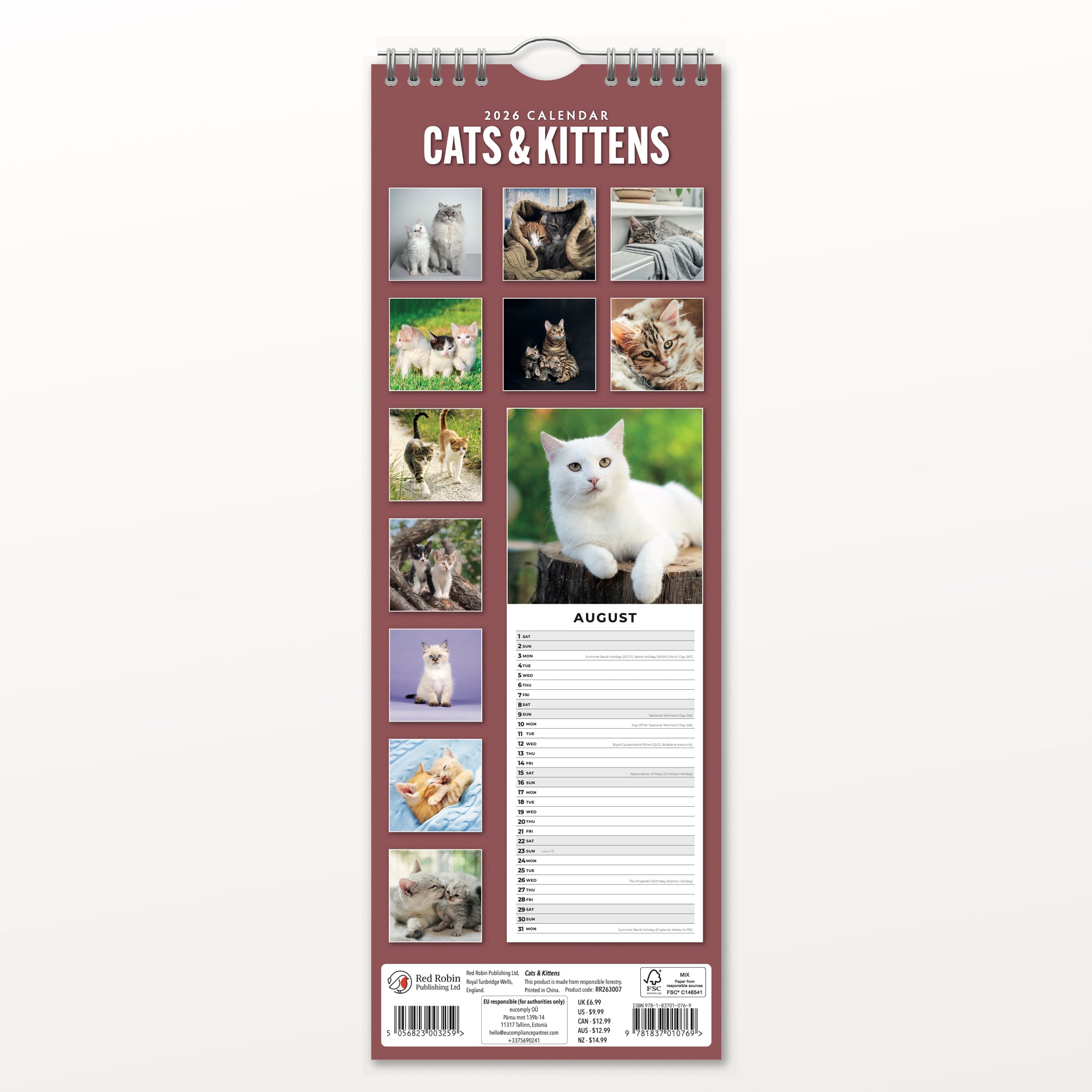 Red Robin 2026 Cats & Kittens Monthly Slim Calendar | 6" x 16" Open | Premium Thick & Sturdy Paper | Tall Hangable 12 Month Calendar | Vivid Images | Plastic Free | Wire Spiral