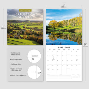 • Premium 12" x 24" open wall calendar featuring vivid images of Country Scenes, printed on thick & sturdy paper.