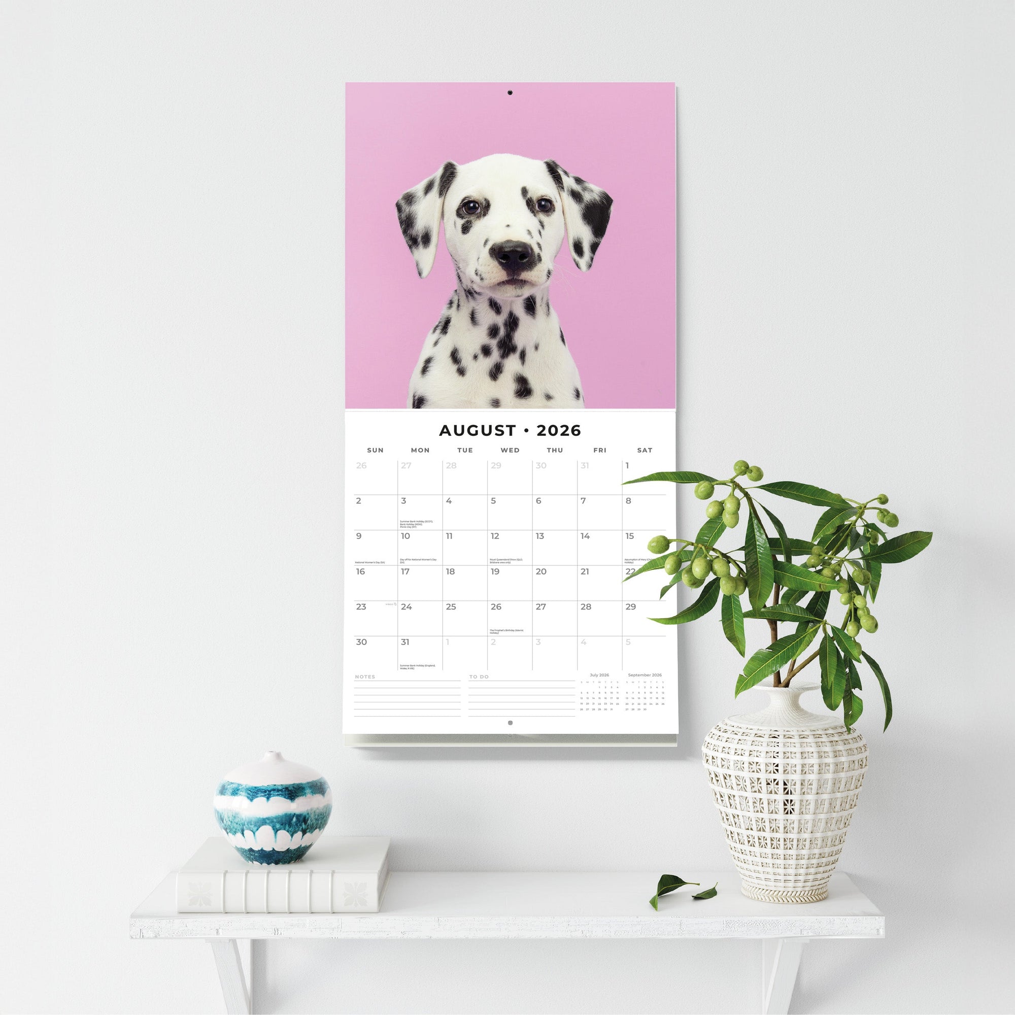 Start each month with spotted joy using this Dalmatian Puppies calendar, opening to 12" × 24" on premium thick & sturdy paper built for energetic homes. The hangable 12-month layout is completely plastic free and features a lined notes & to-do area on every page—ideal for puppy playtimes, training logs, or family outings—while vivid images capture their playful spots and wagging tails.