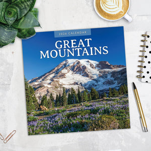 • Premium 12" x 24" open wall calendar featuring vivid images of Great Mountains, printed on thick & sturdy paper.