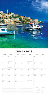 Island-hop through sapphire seas with this Greek Islands 2026 Wall Calendar, opening to 12" × 24" on premium thick & sturdy paper. The hangable 12-month format is completely plastic free and offers a lined notes & to-do area—perfect for ferry schedules, archaeological tours, or sunset-watch reminders—while vivid spreads capture Santorini’s caldera, Crete’s shores, and Mykonos’ windmills.