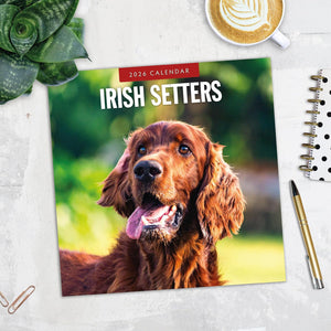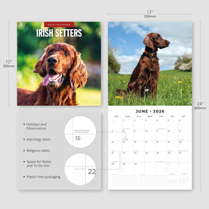 - Premium 12" x 24" open wall calendar featuring vivid images of Irish Setters, printed on thick & sturdy paper.