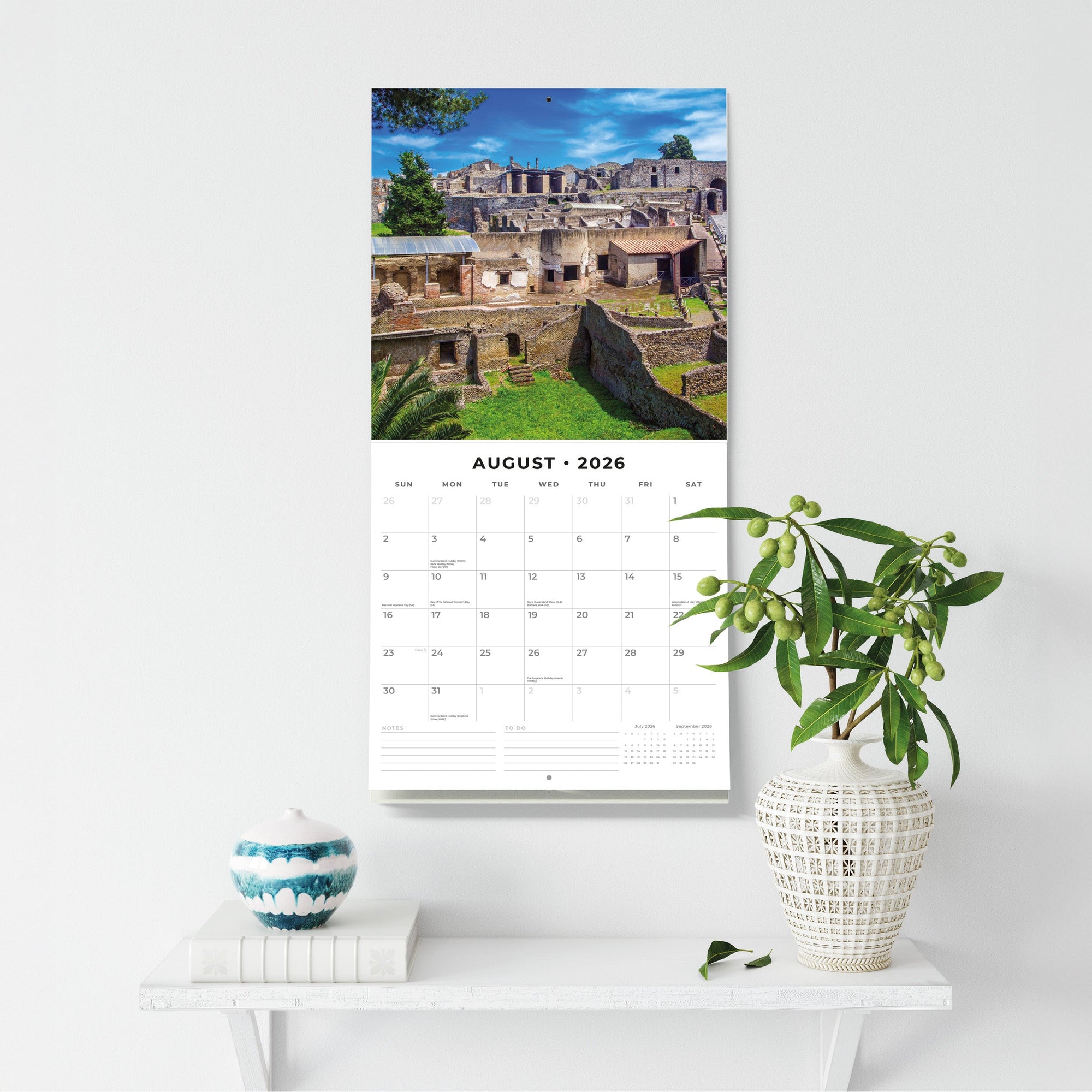 - Premium 12" x 24" open wall calendar featuring vivid images of Italy, printed on thick & sturdy paper.