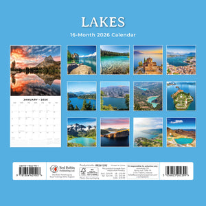• Premium 12" x 24" open wall calendar featuring vivid images of Lakes, printed on thick & sturdy paper.