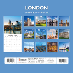 • Premium 12" x 24" open wall calendar featuring vivid images of London, printed on thick & sturdy paper.