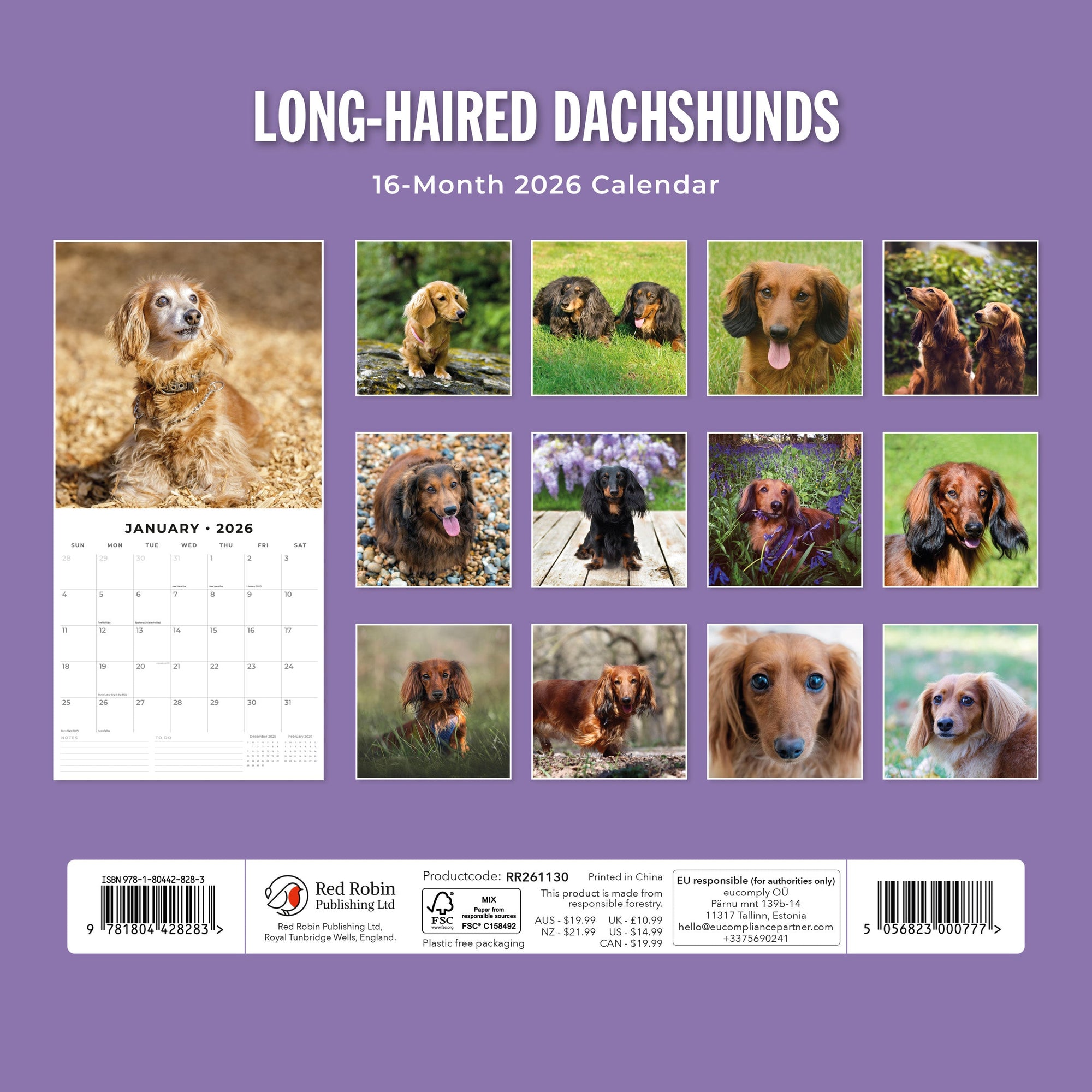 Red Robin 2026 Long-haired Dachshunds Monthly Wall Calendar | 12" x 24" Open | Premium Thick & Sturdy Paper | Hangable 12 Month Calendar | Lined Notes & To Do Area | Vivid Images | Plastic Free