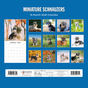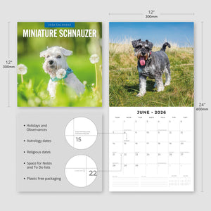 - Premium 12" x 24" open wall calendar featuring vivid images of Miniature Schnauzers, printed on thick & sturdy paper.