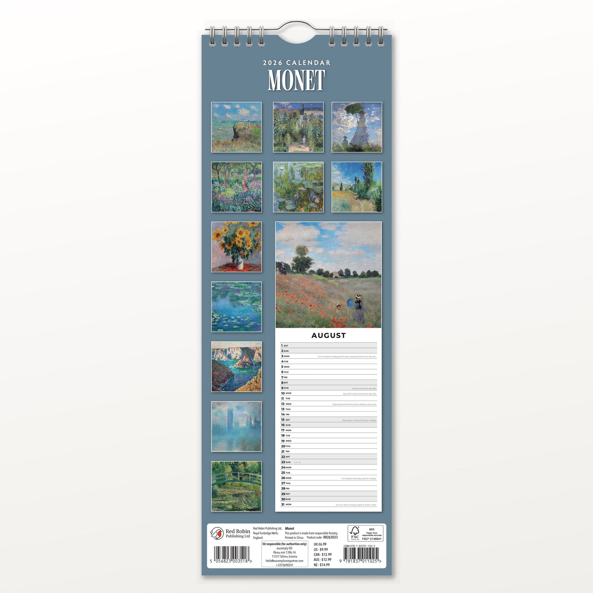 Red Robin 2026 Monet Monthly Slim Calendar | 6" x 16" Open | Premium Thick & Sturdy Paper | Tall Hangable 12 Month Calendar | Vivid Images | Plastic Free | Wire Spiral