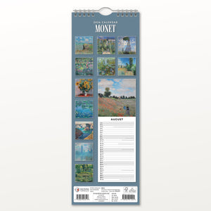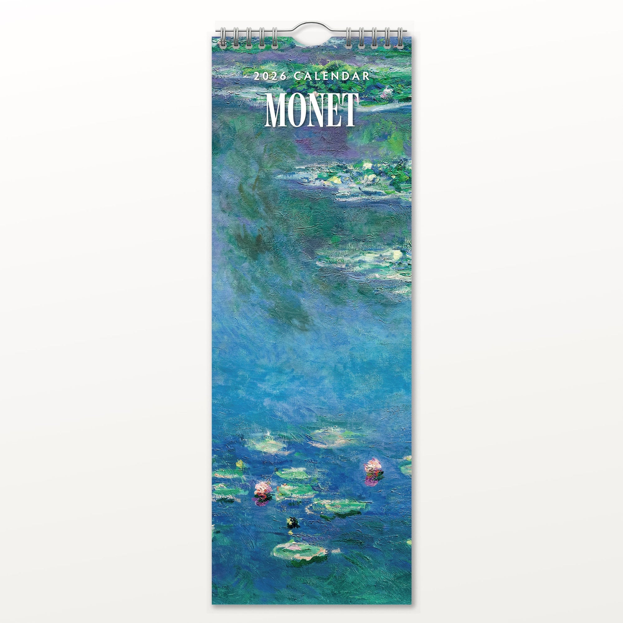 - Premium 6" x 16" open slim wall calendar featuring vivid images of Monet, printed on thick & sturdy paper.