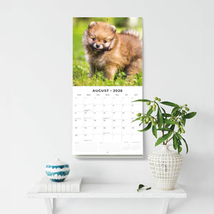 - Premium 12" x 24" open wall calendar featuring vivid images of Pomeranians, printed on thick & sturdy paper.