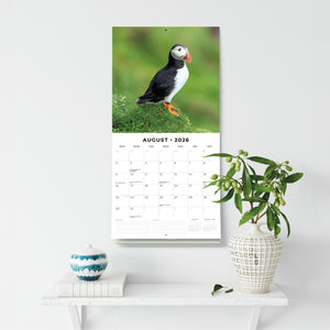 Soar into a year of coastal wonder with this Puffins 2026 Wall Calendar. This 12" × 24" open calendar is printed on premium thick & sturdy paper that holds up to daily flips. The hangable 12-month layout is 100% plastic free and features a lined notes & to-do area on each page—perfect for wildlife-spotting notes, travel itineraries, or inspiring doodles—while vivid, beak-to-claw imagery captures the quirky charm of these seabirds.