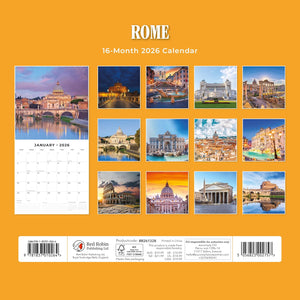 - Premium 12" x 24" open wall calendar featuring vivid images of Rome, printed on thick & sturdy paper.