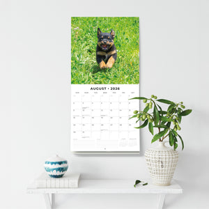- Premium 12" x 24" open wall calendar featuring vivid images of Rottweiler Puppies, printed on thick & sturdy paper.
