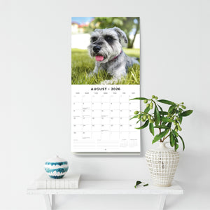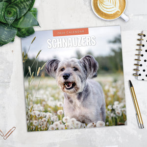 - Premium 12" x 24" open wall calendar featuring vivid images of Schnauzers, printed on thick & sturdy paper.