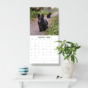 Embrace tenacity with this Scottish Terriers calendar, opening to 12" × 24" of premium thick & sturdy paper built to last. The hangable 12-month design is 100% plastic free and includes a lined notes & to-do area on each page—perfect for logging castle visits, book club meets, or daily affirmations—while vivid spreads highlight their wiry coats and confident stance.