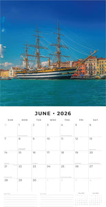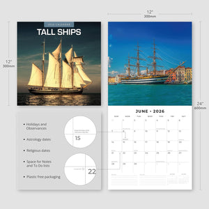 - Premium 12" x 24" open wall calendar featuring vivid images of Tall Ships, printed on thick & sturdy paper.
