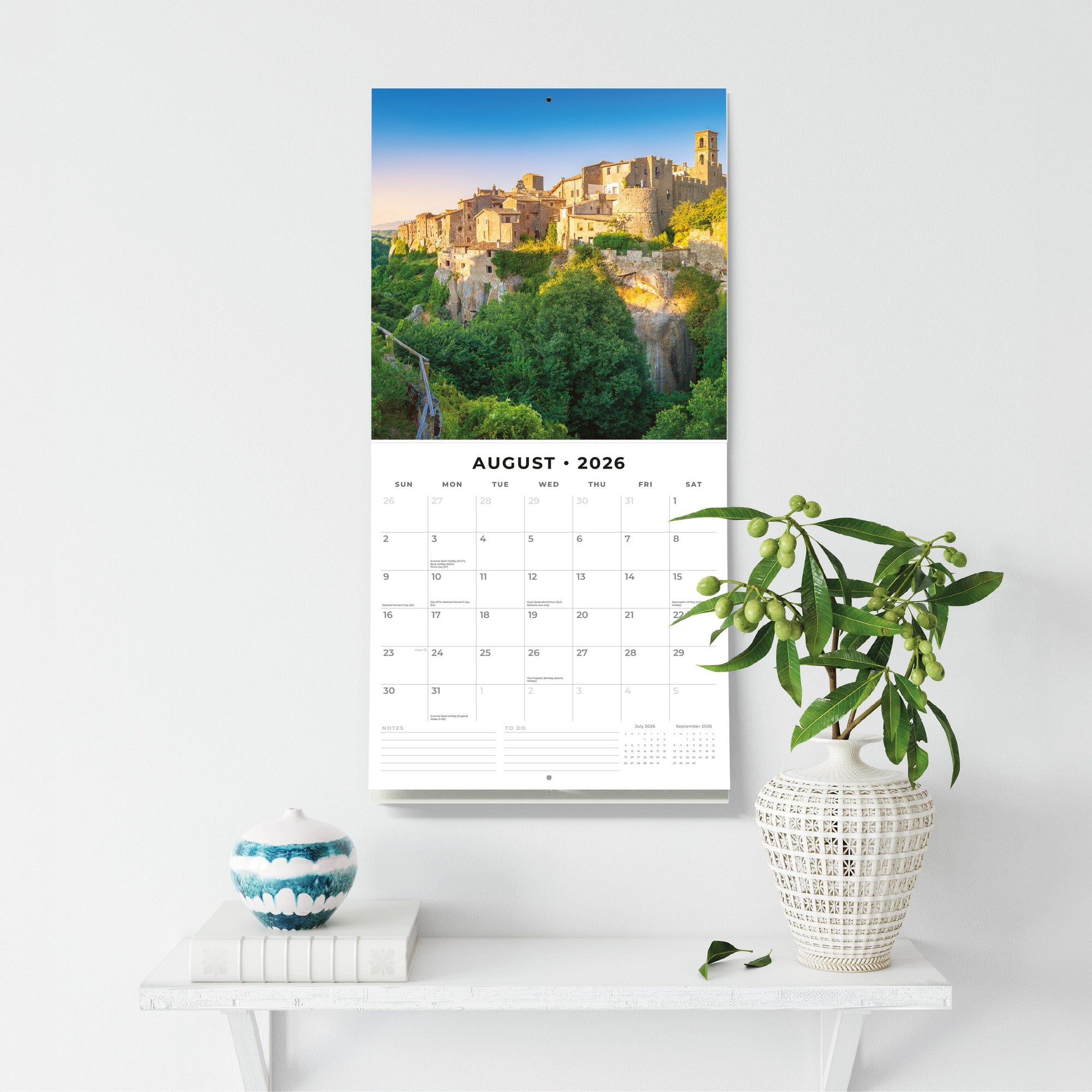 - Premium 12" x 24" open wall calendar featuring vivid images of Tuscany, printed on thick & sturdy paper.