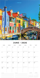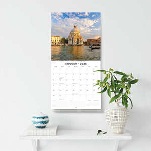 Float through this floating city every month with the Venice 2026 Wall Calendar, opening to 12" × 24" on premium thick & sturdy paper. The hangable 12-month format is completely plastic free and offers a lined notes & to-do area—ideal for gondola ride logs, mask-making classes, or canal photography—while vivid spreads capture St. Mark’s Square, Rialto Bridge, and hidden canals.
