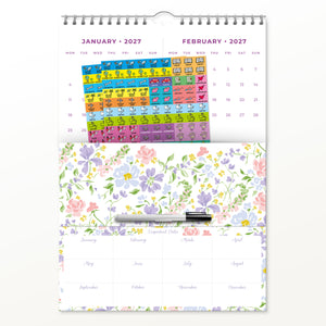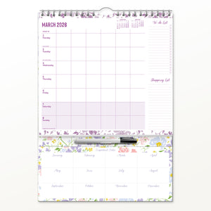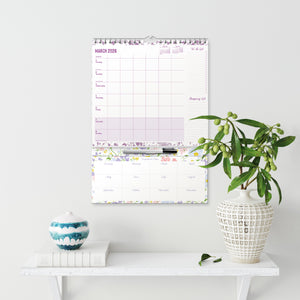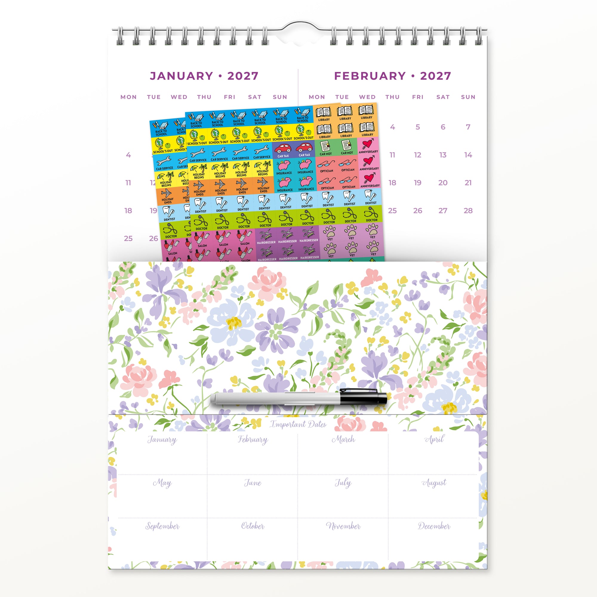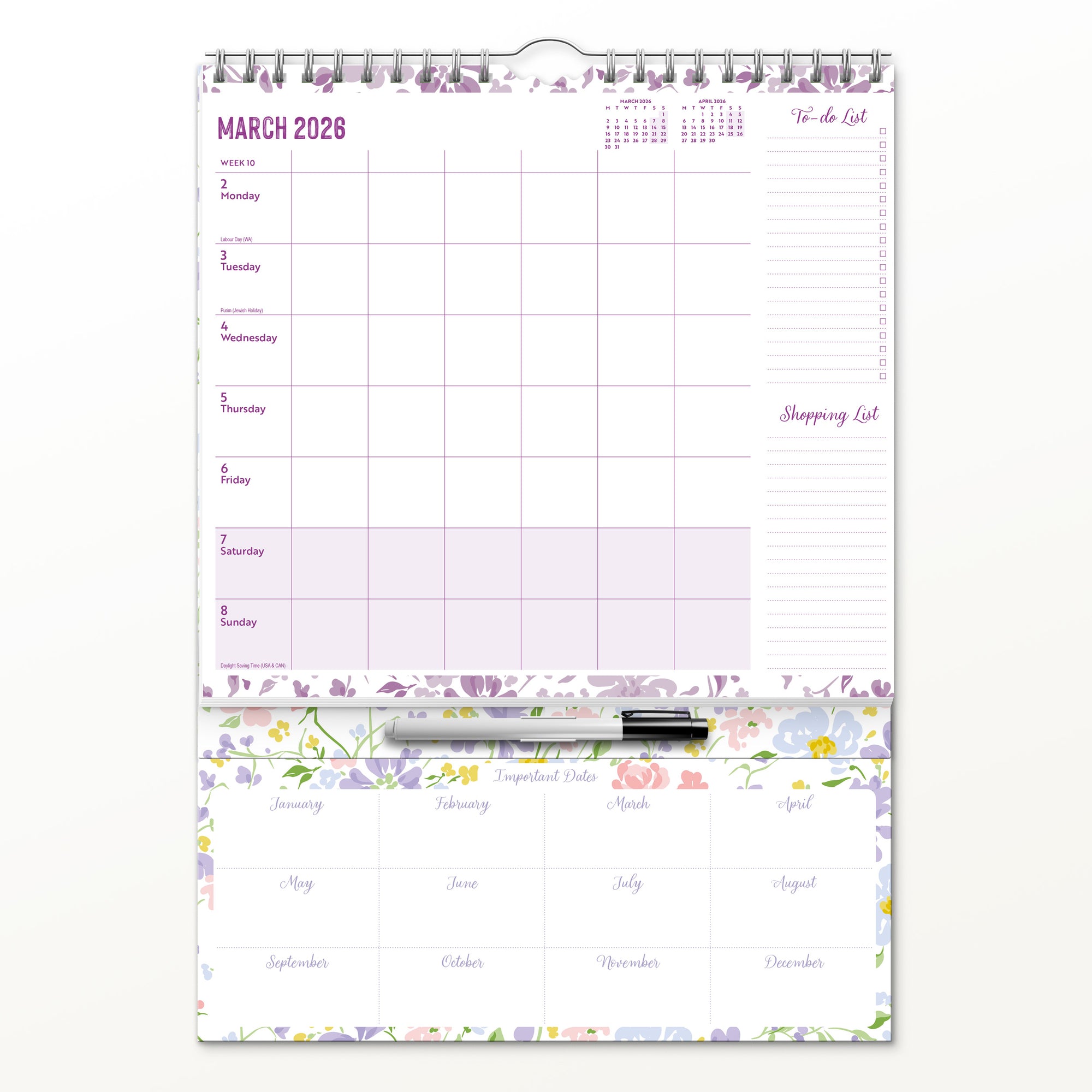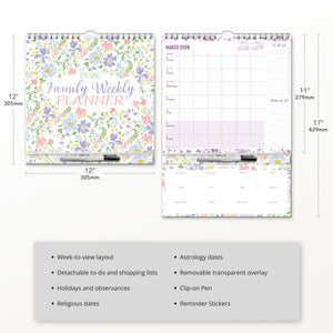 Clip-on Pen for instant jot-downs Week-to-View Layout offering a panoramic look at your family’s week Twin-Wire Binding with Hangable Hook for durability and easy wall display