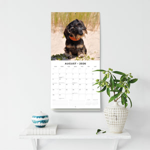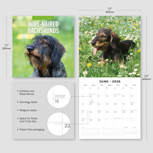 • Premium 12" x 24" open wall calendar featuring vivid images of Wire-haired Dachshunds, printed on thick & sturdy paper.