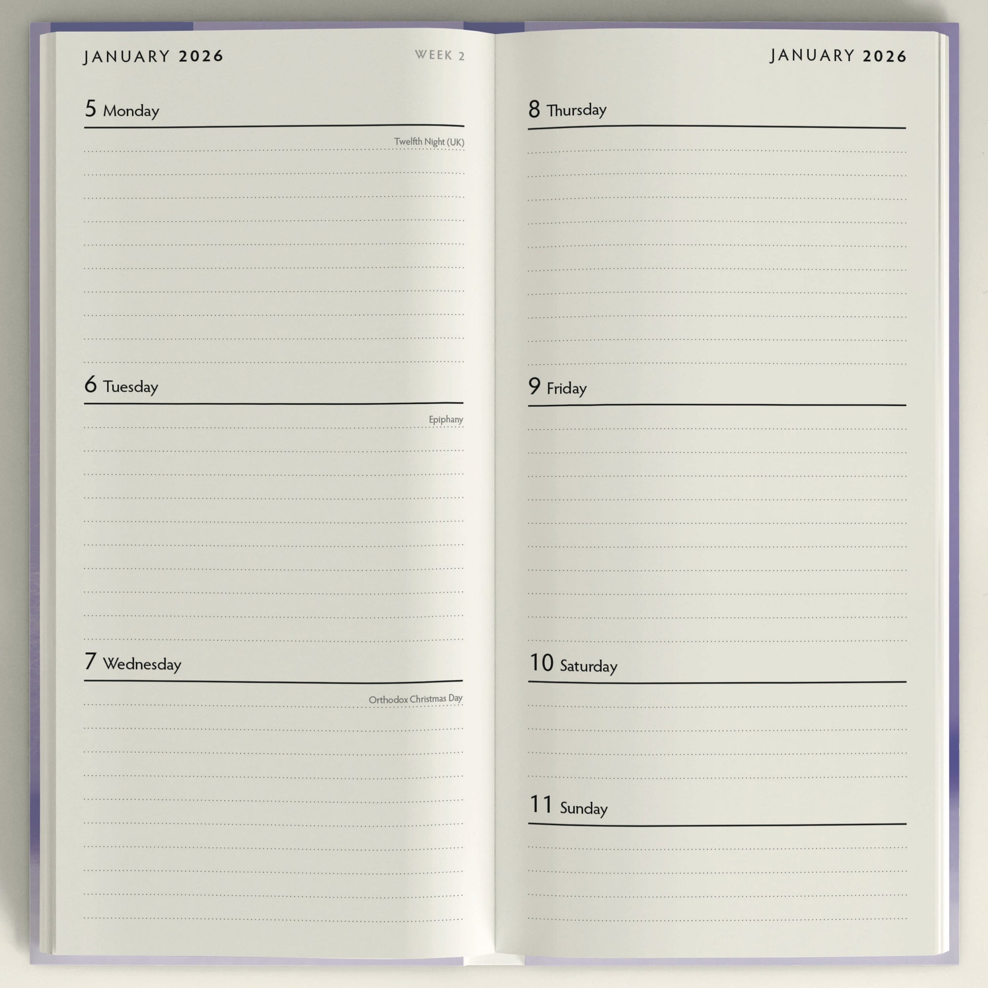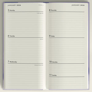 - Bigger weekday lined notes with a smaller weekend area for appointments and reminders.