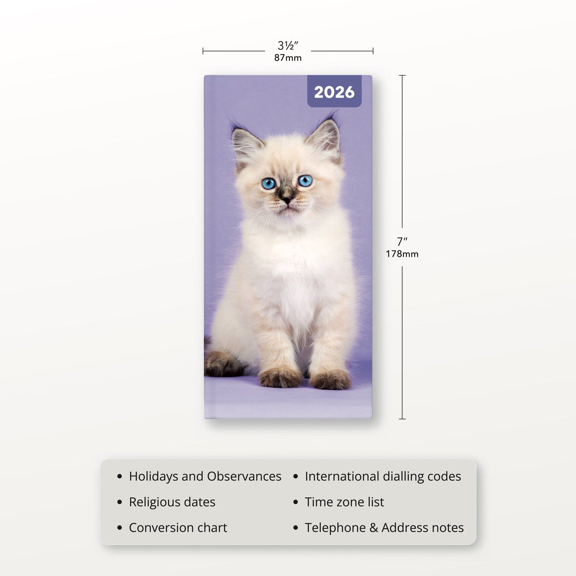 - Premium 7" x 3.5" slim pocket weekly planner with a hardcover image of Cats & Kittens, printed on thick & sturdy paper.