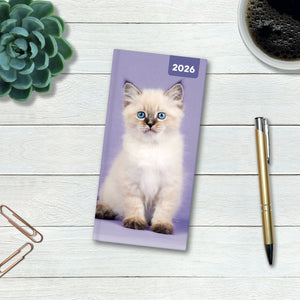 Unleash purr-fect organization with our 2026 Cats & Kittens pocket weekly planner, sized just 7" long × 3.5" wide—ideal for slipping into purses or back pockets. Its hardcover protects twelve months of weekly views on premium thick & sturdy paper that resists ink bleed and daily wear, while the compact format keeps your to-dos at your fingertips.