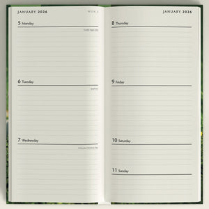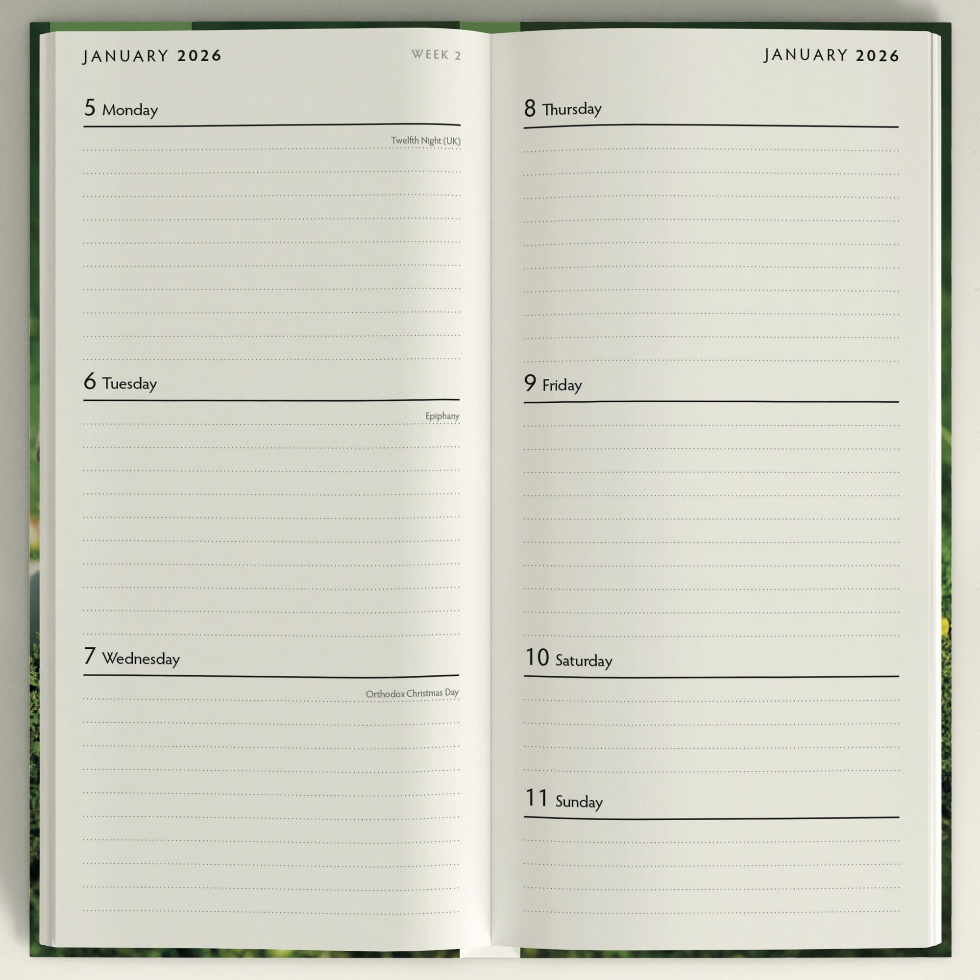 • Bigger weekday lined notes with a smaller weekend area for appointments and reminders.