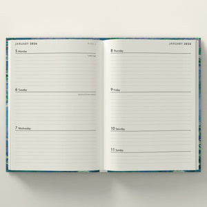Float into calm with this Monet padded weekly planner, sized 8.5" × 6" and wrapped in a sumptuous padded cover echoing water-lily hues. The plastic-free design houses premium thick & sturdy paper printed with a clear weekly view and ample margins for notes, reflections, and quick impression sketches. Its A5 profile fits slim pockets yet offers full-sized planning power.