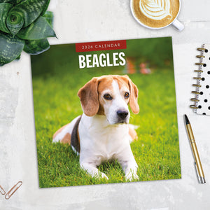 - Premium 12" x 24" open wall calendar featuring vivid images of Beagles, printed on thick & sturdy paper.