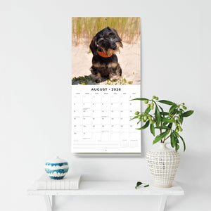 - Premium 12" x 24" open wall calendar featuring vivid images of Wire-haired Dachshunds, printed on thick & sturdy paper.