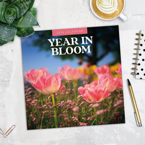 - Premium 12" x 24" open wall calendar featuring vivid images of Year in Bloom, printed on thick & sturdy paper.