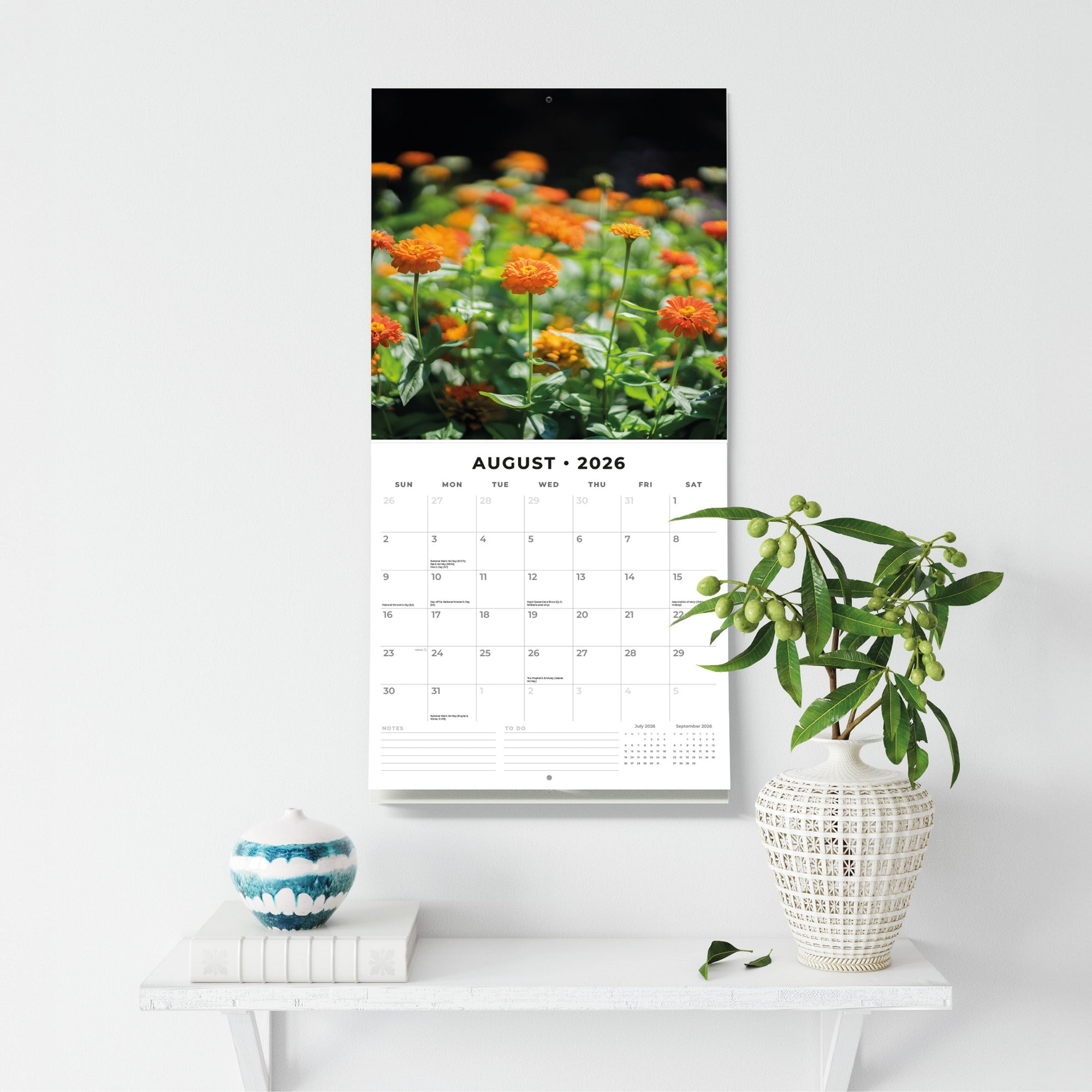 - Hangable 12-month design makes it easy to display in any room or office.